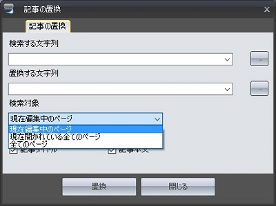 現在編集中のページ、現在開かれているすべてのページ、全てのページから選ぶことができます。